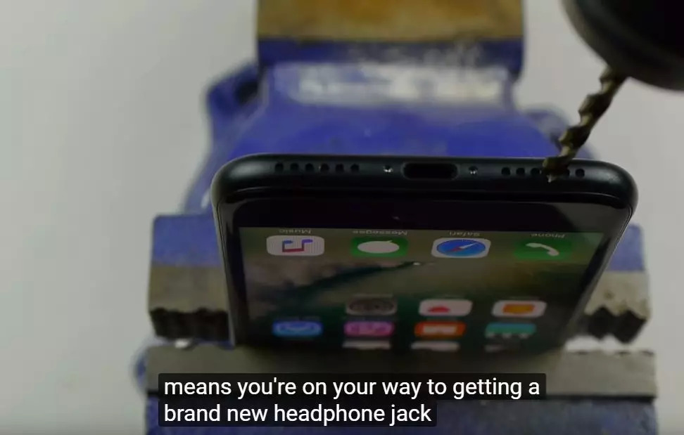 根据他的说法,要让隐藏耳机孔出现 ,只需要拿起钻机,对准之前耳机孔的位置,然后,钻。