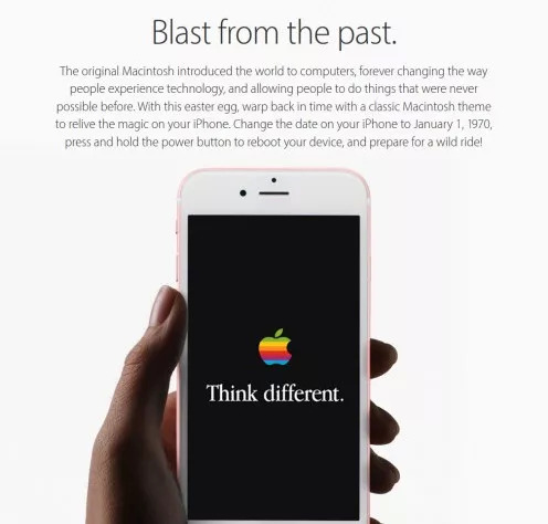 “只要把手机时间设置到 1970 年 1 月 1 日,你就能解锁苹果的怀旧主题。”可事实上,你只会解锁一个白苹果:这样会让iPhone 在重启时,某个 time check 失败,然后宕机。