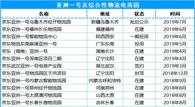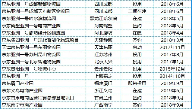亚洲一号和电商产业园,主要是物流和综合性电商,2013年起至今京东已签约、开建或投用的亚洲一号及综合性物流园区37座(不完全统计)。