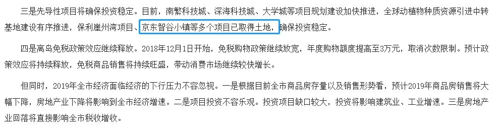 2018年3月,京东再次签约京东智谷项目,这次的地点是三亚,合作协议中提到小镇建设、现代智慧物流、云计算、电商旅游等多个层次。选址960查阅资料发现,该项目已在三亚拿地。