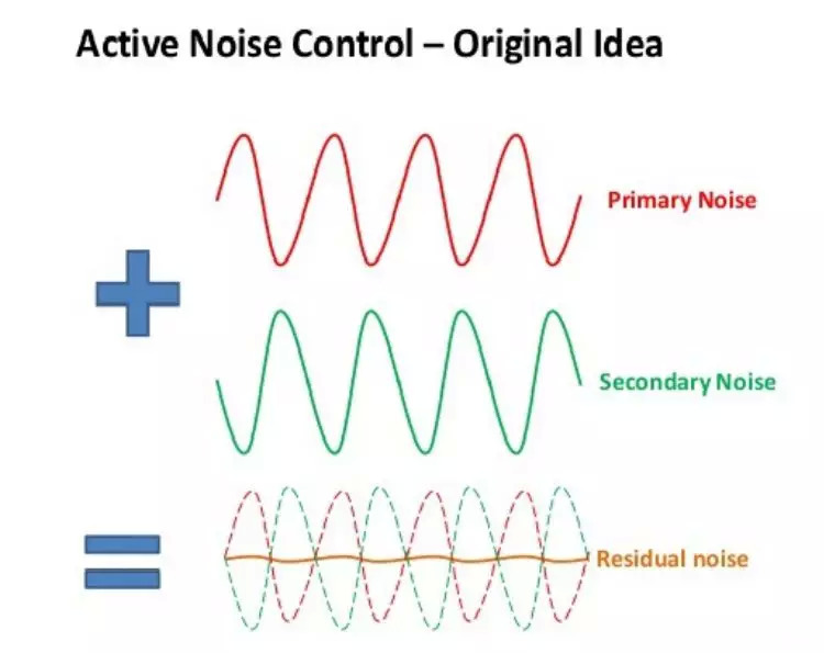 好比一个物体受力向上振动时,又有一股力主动出击,使劲压住这波振动,让其留在原地不动。主动降噪技术就是这么干的,让一股音波压制另一股音波。
