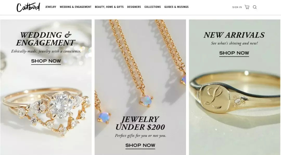 尽管可选的款式数量庞大,但每款戒指的存货量却不高。Catbird 甚至会在网站上标明,部分戒指的尺寸会根据每份订单重新制作,所以会有不可退换货的折扣价。