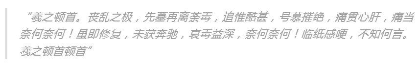 《丧乱帖》是王羲之为表示自己的无奈和悲愤之情所作。叛军作乱,王家在琅琊的祖坟遭到兵火破坏,时年五十余岁的王羲之书道已然大成,却无力为祖宗做些什么,心中难过之极,写出的字全都由心而发,遂写作信札《丧乱帖》,表示自己的无奈和悲愤之情,雄强风骨在其点画间淋漓尽致地反映了出来。