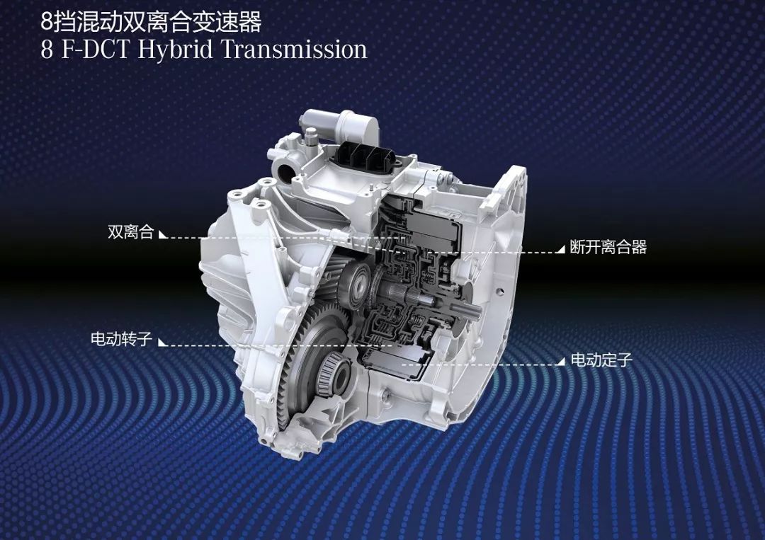 新车型采用横向安装的发动机,配备一台8F-DCT双离合变速器,发动机没有单独的12V启动器,完全由电动机启动。 混合动力的高系统总输出提供充足的驾驶乐趣。