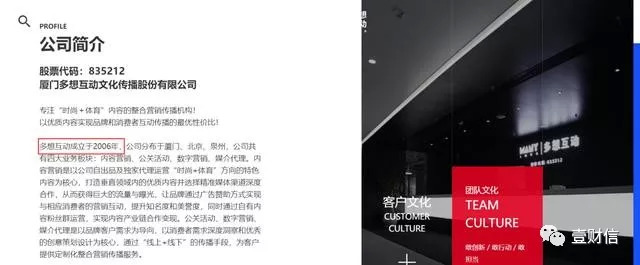 《壹财信》发现,多想互动在招股书中披露的公司成立时间和官网并不一致。官网提到多想互动成立于2006年,然而在招股书中,《壹财信》却发现厦门多想智造文化传播有限公司(多想互动前身,下称“多想有限”)成立于2012年5月,披露成立时间不一令人困惑。