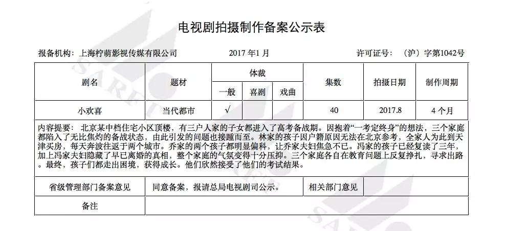 但《小欢喜》在广电总局备案时的内容提要与如今播出的剧情出入很大。在备案中提到的复读、户籍、偏科等话题,在最终的播出剧情中,完全没有提及。