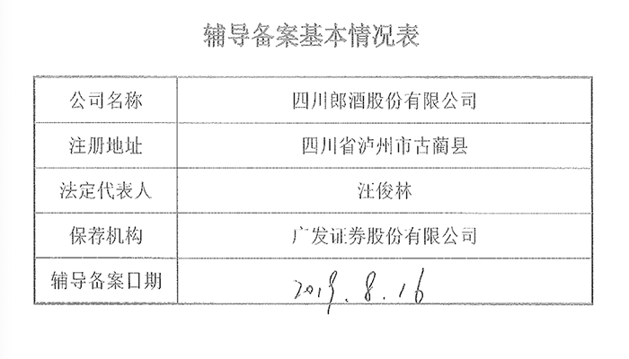 8月20日晚间,中国证监会四川省监管局官网公开了《郎酒股份辅导备案基本情况》。四川郎酒股份有限公司保荐机构为广发证券,注册地在泸州市古蔺县,辅导备案日期为2019年8月16日。
