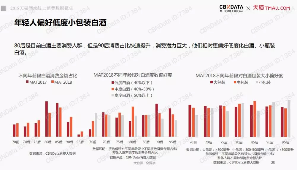 CBNData报告显示,酒水消费中,80后、90后消费群体占比近70%。这群人到底喜欢什么白酒?这份报告称,他们偏好低度、小包装白酒。