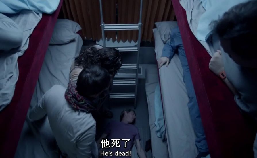 没错,就是那位睡在医生对面的身份不明的男人!众人一下慌了手脚,本想着马上报警,结果澳洲胖妹刚刚勾搭上的帅哥突然发话了,说不想惹上麻烦。众人陷入了沉默,的确,如果马上报警了,中年夫妇可能会错过女儿的婚礼;医生可能会错过重要的面试;帅哥逃票的事情可能会被发现……在各自私心的驱使下,众人只好装作一切都没有发生,打算直接睡到第二天早上。由于帅哥没有买票,他也不介意地和尸体挤了一宿。(真是心大啊!!!)