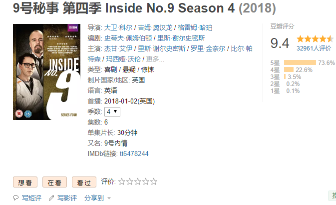 《九号秘事》系列迄今为止一共出了四季,第五季预计下月播出。到目前为止,每一集的豆瓣得分都很高。第一季开播就有9分,第四季更是打出了9.4分的高分!