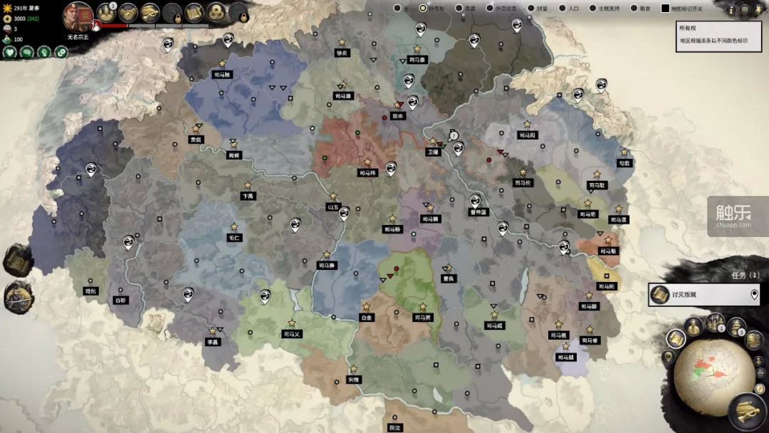 CA选择了这个时代剧本,必定是要付出代价的。由于西晋并不是一个真正意义上的分裂时代,所以在地方上几乎没有独立势力,解决这个问题的最好办法显然是考据一下西晋当时各地的行政长官并把他们编入游戏中,这样的话即便不符合历史情况,至少也落得一个认真考据的名声,但CA看起来丝毫没有这方面的想法,对于地方势力,他们用了最为简单粗暴的方式——随机生成。
