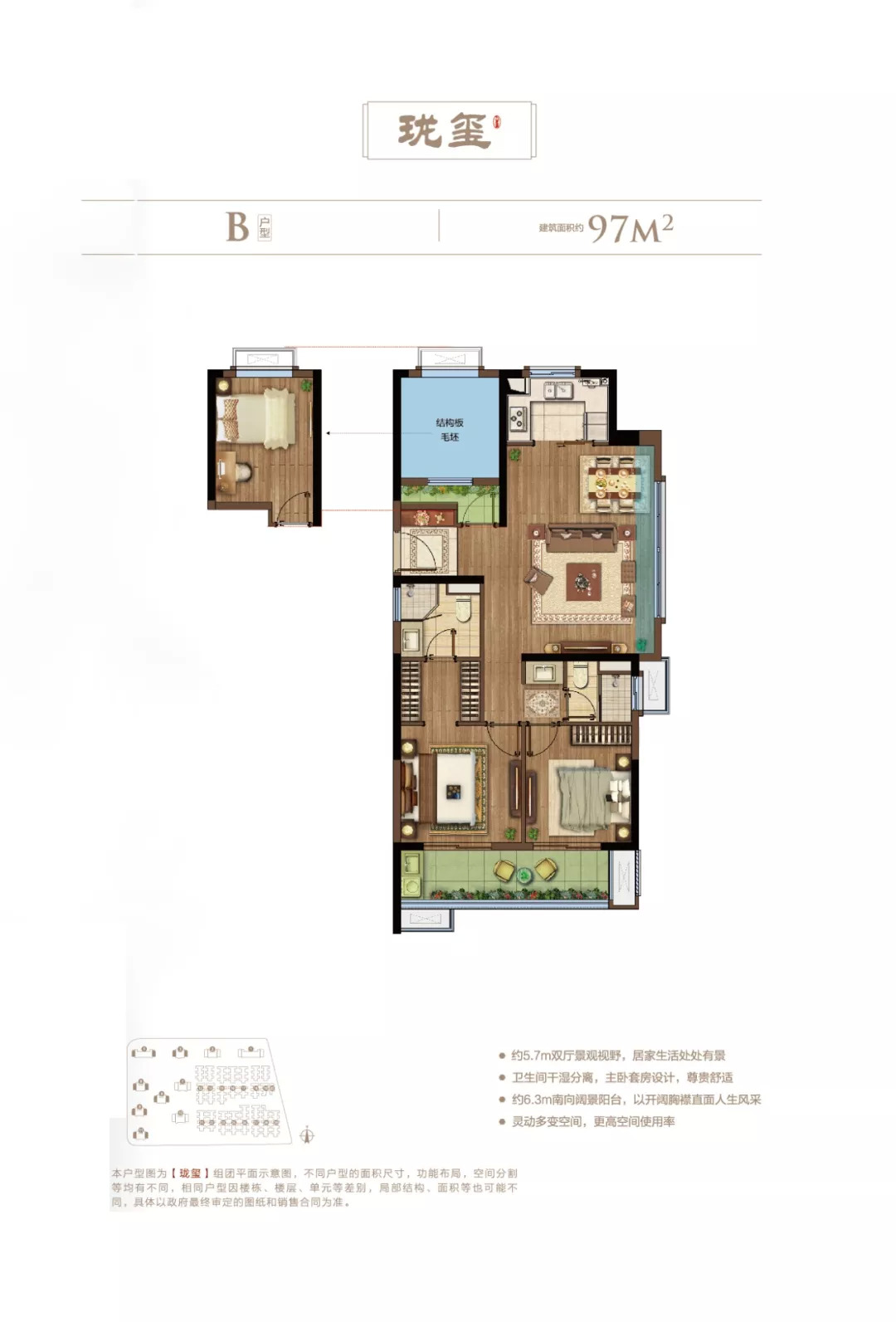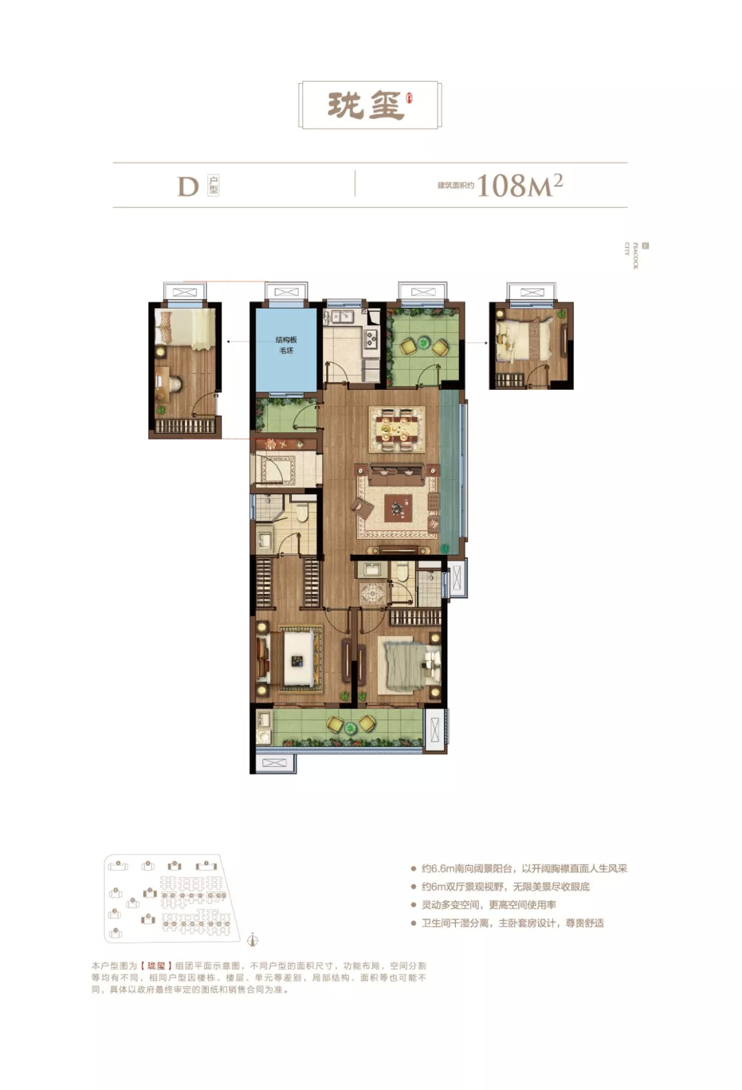 项目户型上项目采用了独特的户型布局设计,侧重细节人性化设计,更多的可改造空间,大大提高了房屋的得房率及性价比;细分为针对刚需的“小空间全功能”、针对刚改的“舒适型住宅”、针对精英阶层的“品质改善住宅”。