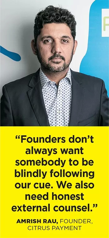 Amrish Rau对此有所了解。Rau与红杉结缘于2012年,那一年他与Jitendra Gupta合作启动了Citrus Payment。当时,红杉杀伐果断地开出了180万美元的支票,要求获得该公司24%的股份。这震惊了Rau——他对同样股份的预期报价仅仅是100万美元。
