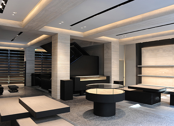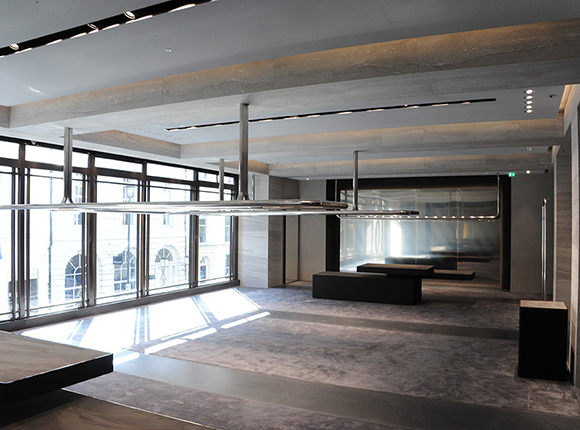 这栋总共600多平米的三层楼店面原是由一楼的邮局和楼上的艺术画廊改建而来的,简单利落的大理石布置充斥着Alexander Wang的风格。与其他店面不同之处在于,本次店面的设计是Vincent Van Duysen与Alexander Wang首次的合作。这位负责操刀的比利时建筑艺术家Vincent曾为Calvin Klein Jeans,,Sportmax百货商店等多家品牌设计过门店。