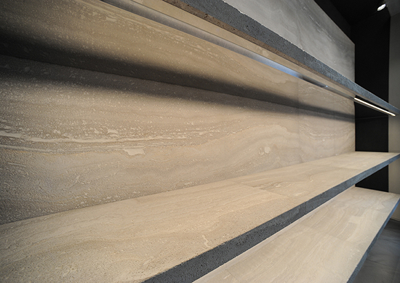 因此,这次的店面与先前Alexander Wang旗舰店黑白线条的硬朗的设计有所区别。“这里面有很多色调深浅的灰色,更加柔和了。因为我们更多地采用了仿麂皮和其它相对而言感性的材质。”相比其它旗舰店的金属材料加上哑光的黑胶,伦敦店则多用了一些粉状和石料的架构,增加了不少的艺术性,连墙壁都换成了多孔的吸声材质。