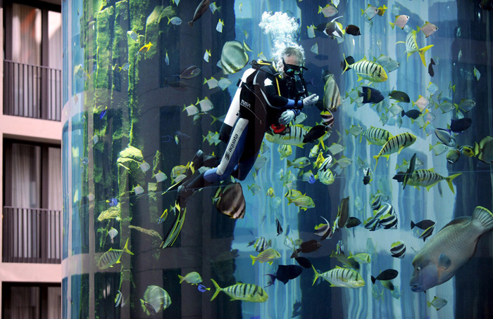 2004年,修建这个大水槽总共耗费了128万欧元(约合人民币872万元)。现在,因为它的个头实在太大,潜水员每天都要上上下下清理三到四次。