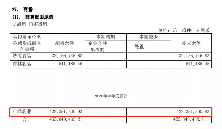 从具体构成来看,主要来自于广泽乳业,其账面原值达4.22亿。