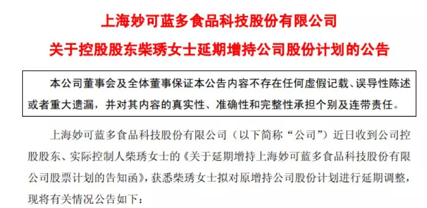 妙可蓝多给的具体理由是“由于公司正在持续推进重大资产重组事项,受公司重大资产重组敏感期的影响,柴琇女士难以在原定期限内完成增持计划。”