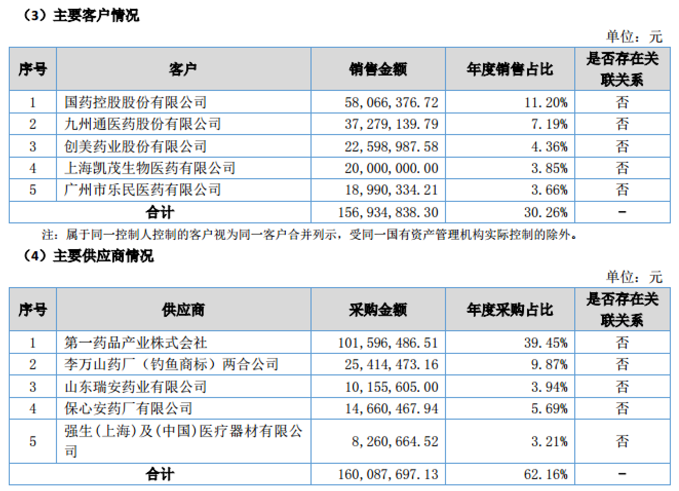 界面新闻记者翻阅招股书也发现,公司主要是做药品和医疗器械的代销,营收占比超过七成;公司多个客户中居然出现当年应收账款金额大于当年销售金额的情况;此次招股说明书与新三板挂牌时候的定期报告中公布的员工数,存在较大差距。