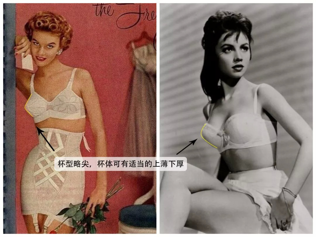 圆锥胸应该选择杯型尖的bra:尖型胸部若是选择太圆润的杯型,会容易空杯。另外适当的上薄下厚设计也可以帮助填充和托起;