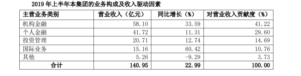 个人金融业务和投资管理业务上半年则分别实现营收41.72亿元和20.71亿元,同比分别增长了11.31%和12.74%。