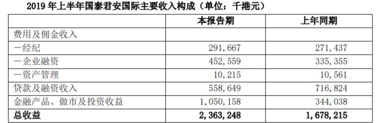 根据国泰君安国际日前发布的半年报,今年前6个月,公司收入同比增长41%至23.6亿港元,创该公司半年历史收入新高。在2019年上半年港股日均成交额同比下降23%的情况下,国泰君安国际的经纪业务逆市增长7.5%,至2.92亿港元,其中港股的交易增长了11%。金融产品、做市及投资业务更是同比增长了2.05倍,至10.5亿港元。