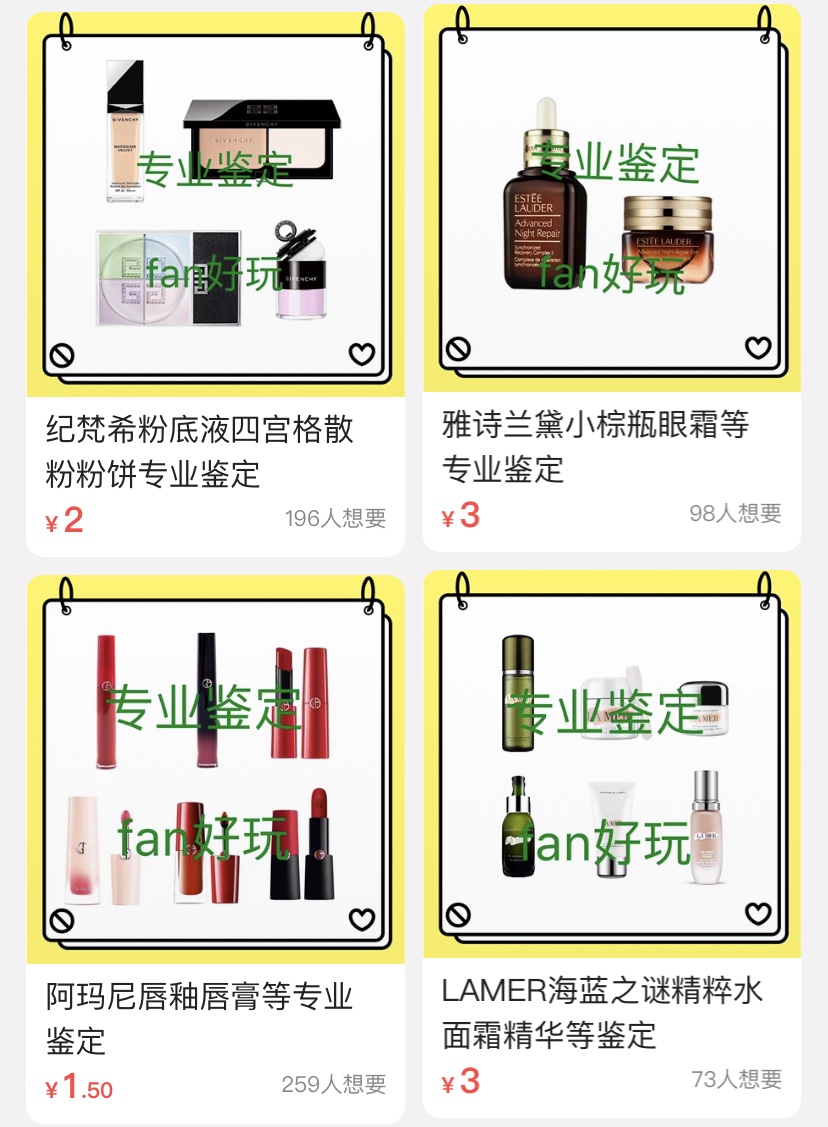 除此之外,该频道还入驻了多个彩妆与护肤品鉴定师,他们会为用户提供有偿鉴定服务,鉴定一款产品的价格在1元至5元不等。