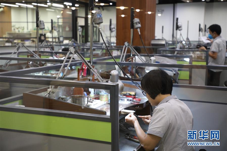 在位于顺德伦教的周大福产业园区,工艺师在制作珠宝(8月12日摄)。新华社记者 李嘉乐 摄