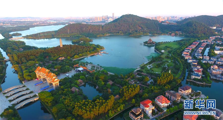 绿树环绕、湖水相间的顺峰山公园(资料照片)。新华社发