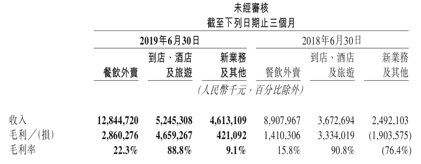 在各项分类业务中,外卖营收128.45亿,同比增速44.2%。毛利28.6亿,毛利率为22.3%,属于整体毛利率改善最好的业务单元。截至2019年6月30日止12个月,美团餐饮外卖交易笔数同比增长34.6%达到21亿笔。