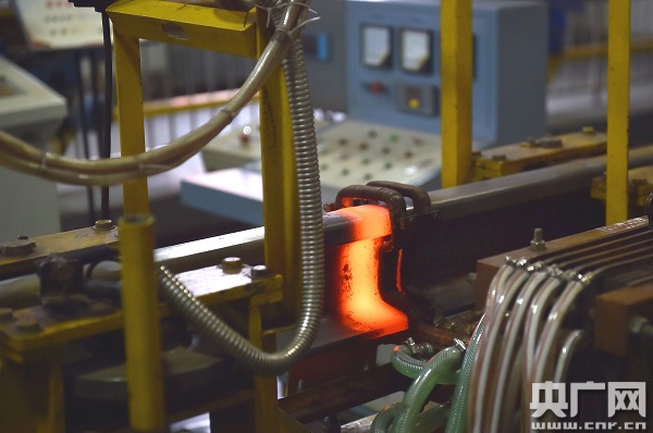 记者现场看到,正火过程中,焊接部位通红,最高温度达到890摄氏度。
