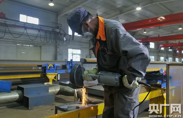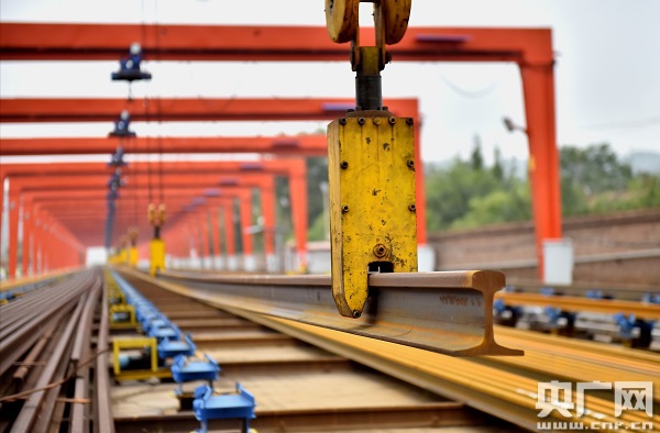 在兰州工务段河口南焊轨基地,记者看到,轨排长得像蜈蚣,但正是这些密密麻麻的“腿”支撑你我出行的路。(央广网记者王晶 摄)