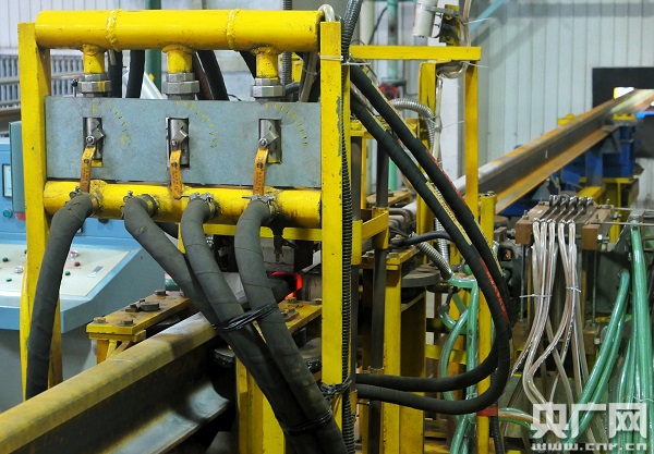 钢轨正在进行二次“美容”(央广网记者王晶 摄)