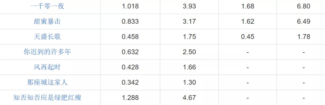 之后播出的《你迟到的许多年》《风再起时》《那座城这家人》等剧集,或是因为定档仓促、几乎零宣传,或是因为本身看点不足,也未能改变收视颓势,直至跨年的《知否》才扳回一城。