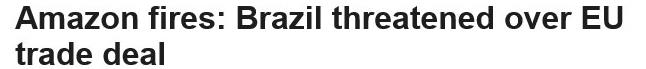 【亚马孙大火:法国巴西总统互怼】法国和爱尔兰表示,除非巴西采取更多措施来扑灭亚马孙大火,否则他们不会批准与该国的一项大规模贸易协议。目前,亚马孙地区的森林大火已经持续燃烧了17天,“地球之肺”笼罩在烟雾之中。
