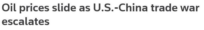 【石油价格下跌】周五,在中国宣布对包括原油在内的价值约750亿美元的美国商品征收报复性关税后,国际油价下跌。