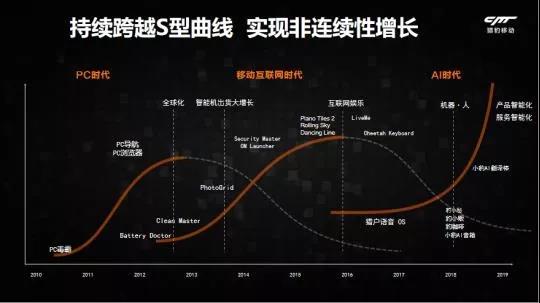不过,在第二条增长S曲线还没有出现瓶颈的时候,猎豹就开始筹划第三条S增长曲线: