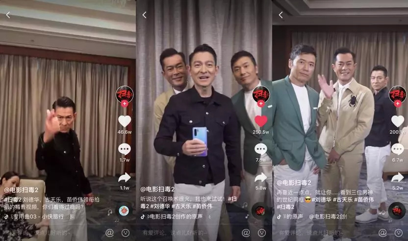 暑期档的《扫毒2天地对决》在这方面表现就很不错,虽然很难说影片取得12亿的高票房与抖音营销关系有多大,但《扫毒2》在抖音的曝光程度应该达到了片方的预期。