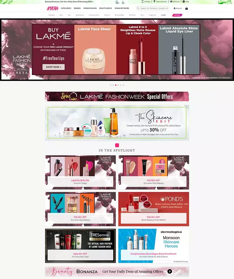2012年,印度美妆电商Nykaa在其网站了销售了第一款产品——美宝莲口红,自2012年的第一笔交易以来,这家印度美容电商的收入已经达到数亿美元,估值达到7.5亿美元。开设了35家实体店,有印度版“唯品会”、“印度丝芙兰”之称。