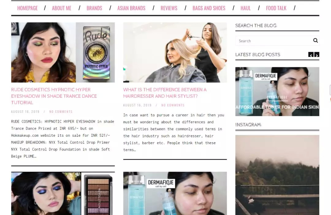 Bharti Puri目前有自己专有的美妆blog网站,在这个网站上,她跟大家分享自己的美妆好物,有时候也会表达自己的一些心情日记。