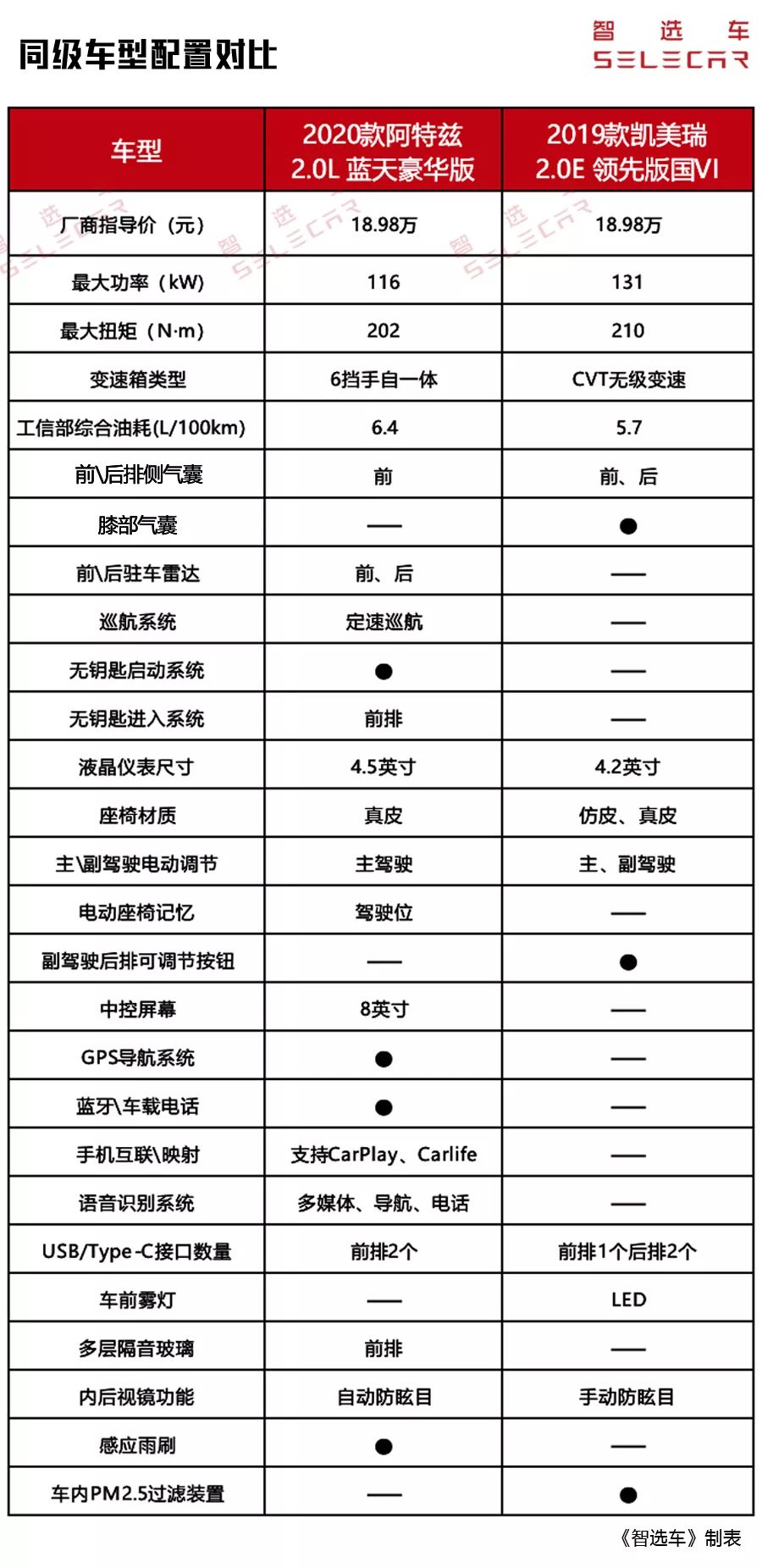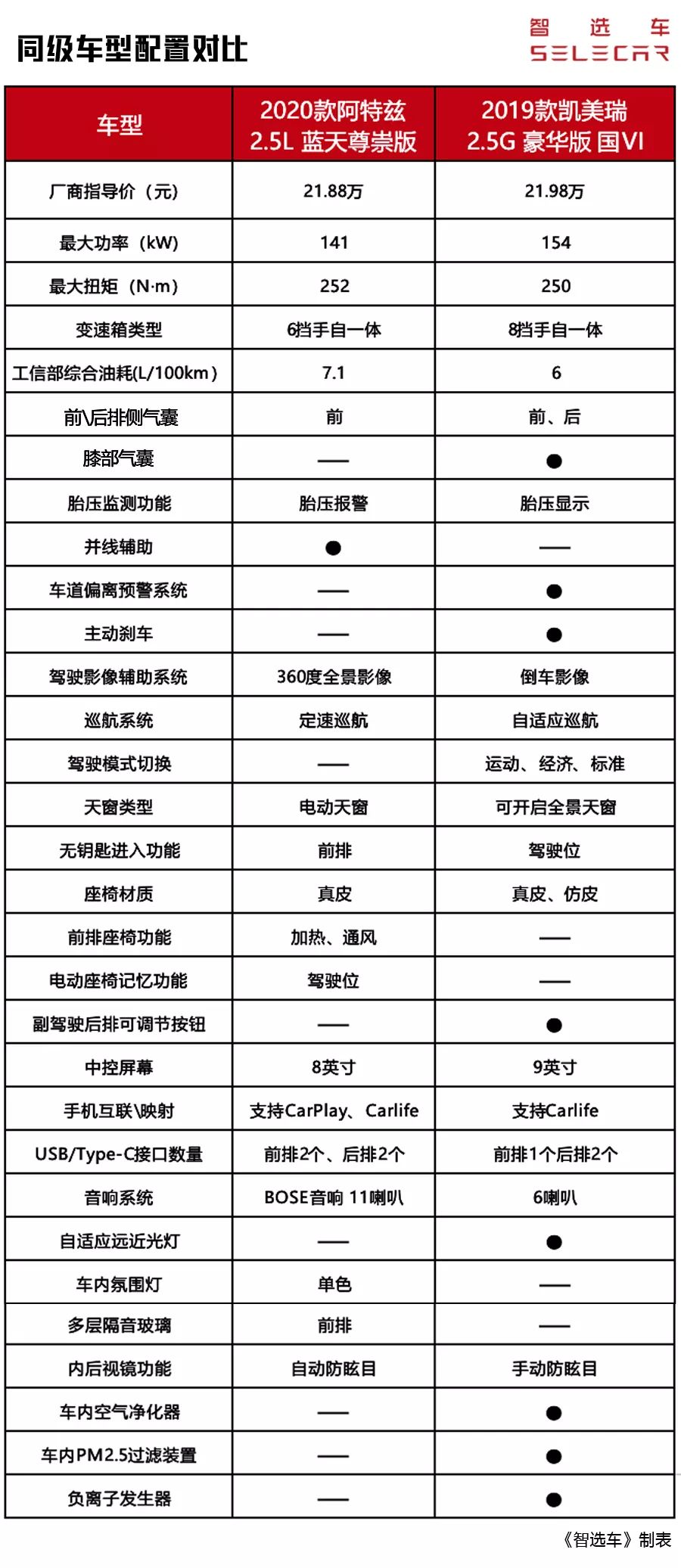 纯从性价比角度考量,无论上2.0L还是2.5L版本的主销版本车型,新款阿特兹的表现更为突出。