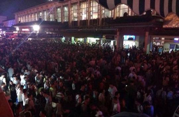 大量旅客滞留在西安,西安火车站外也是人山人海。