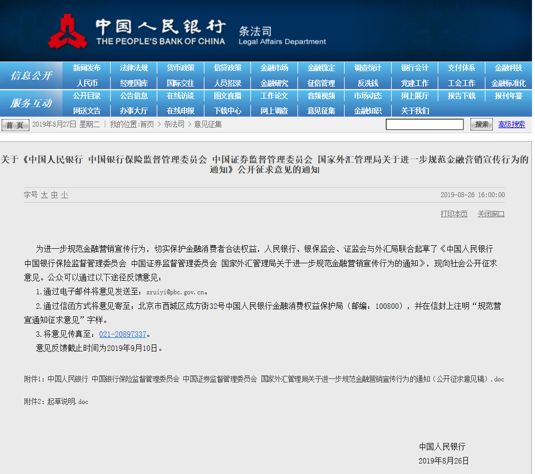 值得一提的是,就在华泰证券收到罚单的同一天,央行、银保监会、证监会、外汇局联合发布通知,就进一步规范金融营销宣传行为向社会公开征求意见。
