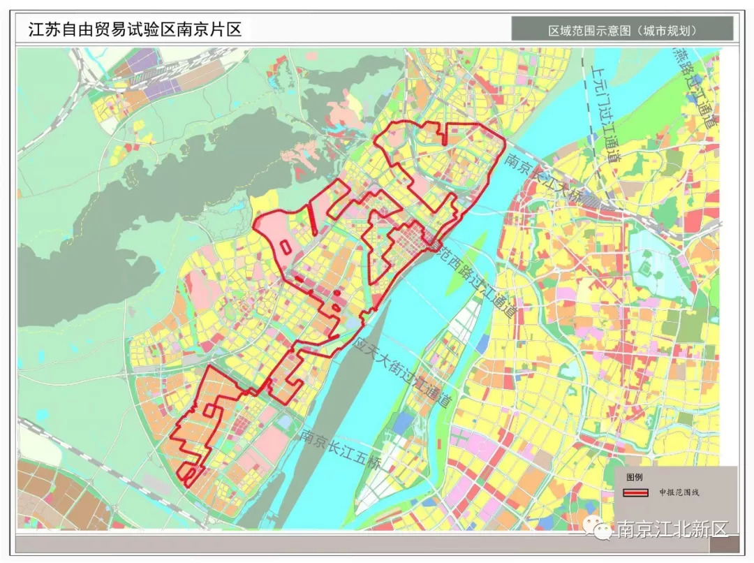 8月27日,官方公布了南京自贸区的范围,位于江北新区,共39.55平方公里,范围如下所示: