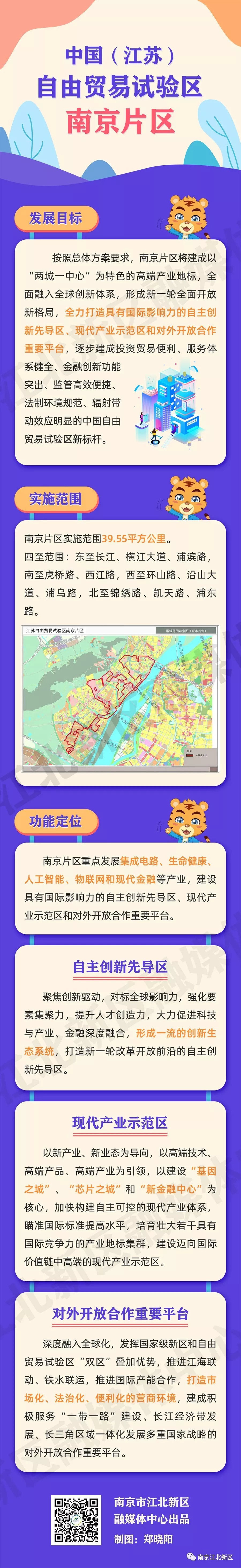 功能划分:南京片区建设具有国际影响力的自主创新先导区、现代产业示范区和对外开放合作重要平台;