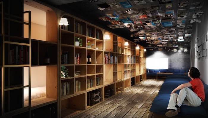 你喜欢阅读吗?你有多喜欢阅读呢?你喜欢阅读的程度已经到了希望睡在书店里吗?如果你的答案是“对对对”,那么2015年9月底即将在日本东京开业的这家叫作“Book and Bed(书籍和床)”的青年旅社特别适合你,因为你真的可以睡在书堆里。
