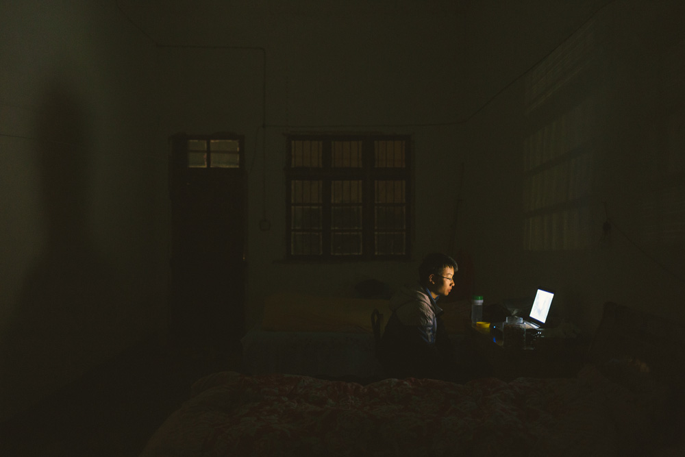 六安冬天最冷的时候是会下雪的,而他家两层楼房里的温度和外边几乎一样,于是他平时都喜欢窝在两层被窝里。没有了在上海宿舍里的WIFIi与电脑,他的作息也非常规律,早上十点起床,晚上八点睡觉,平时就在家里看电视。他说,在家里待着无聊,村里的年轻人过年都不大回来,以前的朋友和同学大多都很长时间没有见过面了。