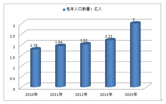 中国作为一个人口大国,2015年,60岁以上的人口就已超过2.22亿人,60岁以上人口所占总人口的比重达16.15%;而《2019-2025年中国人口老龄化市场研究及发展趋势研究报告》也推测预计在2020年,老年人口将突破2.5亿,届时60岁以上人口所占总人口的比重将会达到17.17%;2025年,60岁以上的人口将突破3亿。