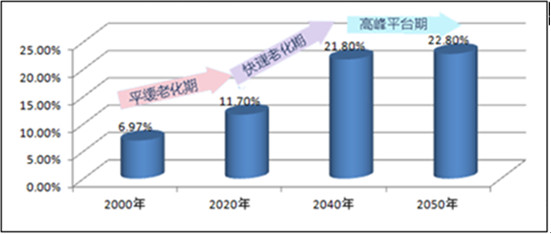 根据相关平台机构整理的数据预测来看从2000年开始我国已经平缓进入老化期,预计从2020年到2040年将进入快速老化期,当中国将进入急速老龄化阶段,老年人成为人口的主要构成,人们对于养生和大健康的需求已不单单是治疗,而是表现在预防、治疗、修复、康养——“四结合”。