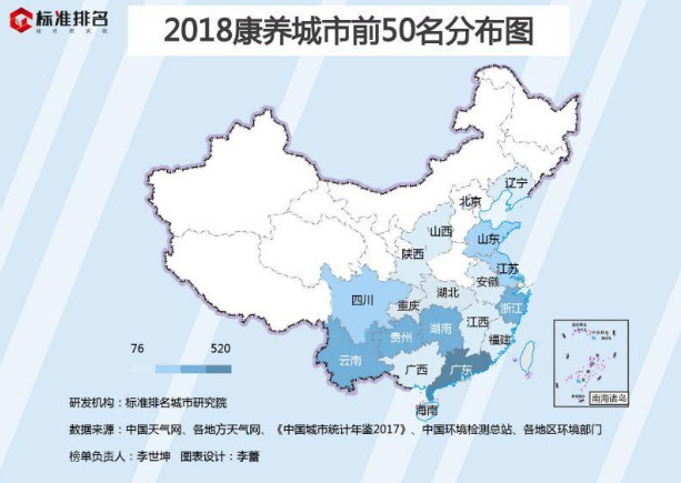 2018年中国康养城市排行榜50强发布,城市前50名分布也可以看出,南北方城市差距较大,西北地区城市无一上榜,远远落后于东南地区,西南地区城市则优势明显,西南地区相对于东南地区更适合康养。